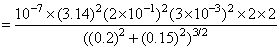 A circular loop of radius 0.3 cm lies parallel to a much bigger circular loop of radius 20 cm. The centre of the small loop is on the axis of the bigger loop. The distance between their centres is 15 cm. If a current of 2.0 A flows through the smaller loop, then the flux linked with bigger loop is :-