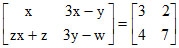 C.x = 3, y = 6, z = 2, w = 7