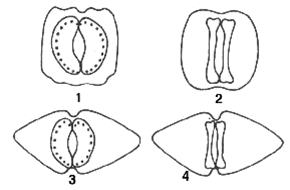 Of the figures 1, 2, 3, 4 the stomatal apparatus belong to jowar is :