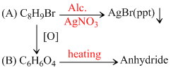 Compound (A), C8H9Br, gives a white precipitate when warmed with alcoholic AgNO3. Oxidation of (A) gives an acid (B), C8H6O4. (B) easily forms anhydride on heating. Identify the compound (A) :