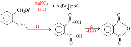 since B on heating gives anhydride so B is 1,2dicarboxylic acid. It contains two Benzylic carbon at 1,2 position so on oxidation it produces 1, 2-dicarboxylic acid