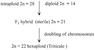 Triticale (Triticosecale) is first man made cereal (produced by Muntzing) which is an artificial allopolyploid derived by crossing wheat (Triticum) and rye (Secale ).