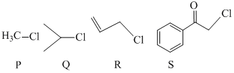 KI in acetone, undergoes SN2 reaction with each of P, Q, R and S. The rates of the reaction vary as -