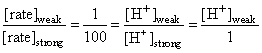 The initial rate of hydrolysis of methyl acetate (1M) by a weak acid (HA, 1M) is 1/100th of that of a strong acid (HX, 1M), at 25oC. The Ka of HA is