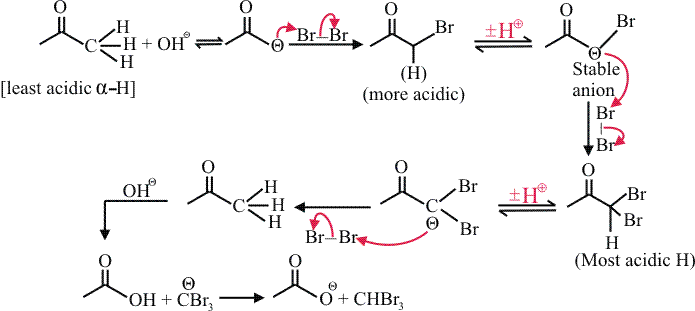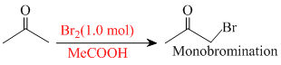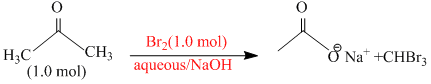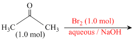In basic medium halogenation dose not stop with replacement of just one hydrogen and poly halogenation takes place because a-haloketones are more reactive towards base and haloform reaction takes placeIn above reaction Br2 is limiting agents.