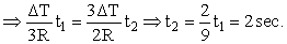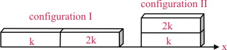 Two rectangular blocks, having identical dimensions, can be arranged either in configuration I or in configuration II as shown in the figure. One of the blocks has thermal conductivity k and the other 2k. The temperature difference between the ends along the x-axis is the same in both the configurations. It takes 9s to transport a certain amount of heat from the hot end to the cold end in the configuration I. The time to transport the same amount of heat in the configuration II is :-