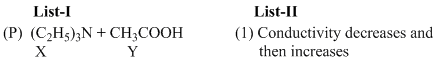 An aqueous solution of X is added slowly to an aqueous solution of Y as shown in List-I. The variation in conductivity of these reactions is given in List-II. Match List-I with List-II and select the correct answer using the code given below the lists :