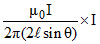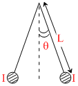 Two long current carrying thin wires, both with current I, are held by the insulating threads of length L and are in equilibrium as shown in the figure, with threads making an angle ′θ′ with the vertical. If wires have mass λ per unit length then the value of I is :- (g = gravitational acceleration)