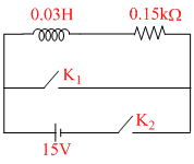 An inductor (L = 0.03 H) and a resistor (R = 0.15 kΩ) are connected in series to a battery of 15V EMF in a circuit shown below. The key K1 has been kept closed for a long time. Then at t = 0, K1 is opened and key K2 is closed simultaneously. At t = 1ms, the current in the circuit will be (e5 ≅ 150)