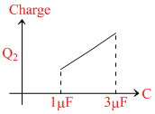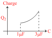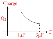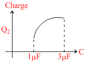 In the given circuit, charge Q2 on the 2μF capacitor changes as C is varied from 1μF to 3μF. Q2 as a function of ′C′ is given properly by : (figures are drawn schematically and are not to scale) :-