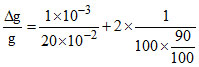 . Measured value of L is 20.0 cm known to 1 mm accuracy and time for 100 oscillations of the pendulum is found to be 90s using a wrist watch of 1s resolution. The accuracy in the determination of g is :