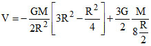 From a solid sphere of mass M and radius R, a spherical portion of radius R/2 is removed, as shown in the figure. Taking gravitational potential V = 0 at r = ∞, the potential at the centre of the cavity thus formed is :