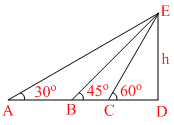 If the angles of elevation of the top of a tower from three collinear points A, B and C, on a line leading to the foot of the tower, are 30o, 45o and 60o respectively, then the ratio, AB : BC, is :