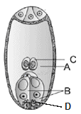 The given figure shows a mature embryo sac. What do A, B, C & D represents