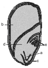D.a - Embryo axis, b - Aleuron layer, c - Root-cap, d - Endosperm, e - Coleoptile