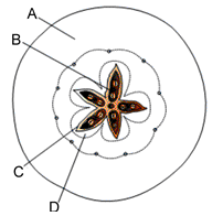 The given figure shows false fruits of apple. What do A, B, C & D represents.