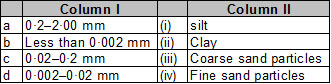 Match the columns of size with soil particles