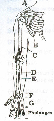 B.A - Scapula, B - Clavicle, C - Humerus, D - Radius, E - Ulna, F - Carpals, G - Metacarpal