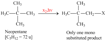 Which branched chain isomer of the hydrocarbon with molecular mass 72 u gives only one isomer of mono substituted alkylhalide ?