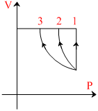 The graph below shows V-P curve for three processes. Choose the correct statement(s)