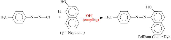 in dil. HCl followed by addition to an alkaline solution of β-naphthol is