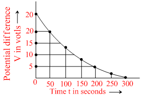 The figure shows an experimental plot fordischarging of a capacitor in an R-C circuit.The time constant