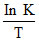 K = A.e−Ea/RT ⇒ lnK = lnA −