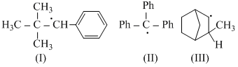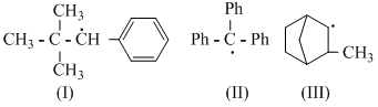 Only (III) has H in conjugation with free radical