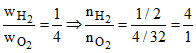 A mixture of gases contains H2 and O2 gases in the ratio of 1 : 4 (w/w). What is the molar ratio of the two gases in the mixture ?