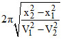A particle is executing SHM along a straight line. Its velocities at distances x1 and x2 from the mean position are V1 and V2, respectively. Its time period is :-