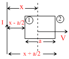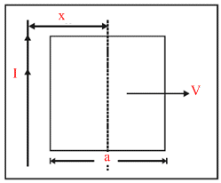 A conducting square frame of side ′a′ and a long straight wire carrying current I are located in the same plane as shown in the figure. The frame moves to the right with a constant velocity ′V′. The emf induced in the frame will be proportional to :