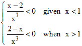 f(x) decreasing ∀ x ∈ (0, 1) ∪ (2, ∞) and f(x) increases ∀ x ∈ (-∞ ) ∪ (1, 2)