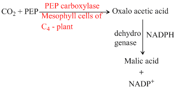 In C4-plants, CO2 is picked up by Phosphoenolpyruvate (PEP) and the reaction being catalyzed by PEP carboxylase.