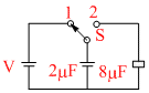 A 2μF capacitor is charged as shown in the figure. The percentage of its stored energy dissipated after the switch S is turned to position 2 is