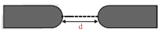 Two identical glass rods S1 and S2 (refractive index = 1.5) have one convex end of radius of curvature 10 cm. They are placed with the curved surfaces at a distance d as shown in the figure, with their axes (shown by the dashed line) aligned. When a point source of light P is placed inside rod S1 on its axis at a distance of 50 cm from the curved face, the light rays emanating from it are found to be parallel to the axis inside S2. The distance d is :