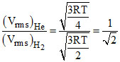 D.The ratio of the rms speed of helium atoms to that of hydrogen molecules is 1/√2.