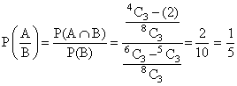 Three numbers are chosen at random without replacement from {1, 2, 3, ..... , 8}. The probability that their minimum is 3, given that their maximum is 6, is :
