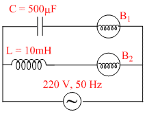 In the circuit shown in figure, if both the bulbs B1 and B2 are identical :