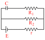 The magnitude of charge in steady state on either of the plates of condenser C in the adjoining circuit is-