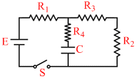 A long time after closing the switch, system comes in steady state and no current flow through capacitor.