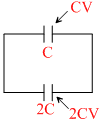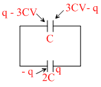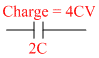 Total charge = 4 CV − CV = 3 CV