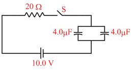 The charge on each of the capacitors 0.16 ms after the switch S is closed in figure is :