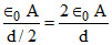The distance between the plates of a parallel plate condenser is d. If a copper plate of same area but thickness d/2 is placed between the plates then the new capacitance will become-