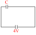 Here, Potential difference on the capacitor will depend on emf of battery i.e., 4V