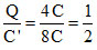 Now charge remains same, as battery is disconnected new capacitance = C′ = KC = 8C