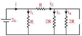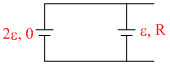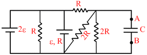potential on C = potential on 2R resistance = i3 × 2R = ε