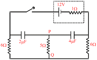 current through resistor PQ is zero just after closing the switch.
