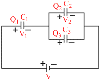 Q1 = Q2 + Q3 , total potential V = V1 + V2 = V1 + V3 = V1 +