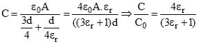 The capacitance of a parallel plate condenser is C0. If a dielectric of relative permittivity er and thickness equal to one fourth the plate separation is placed between the plates, then its capacity becomes C. Then value of C/C0 will be-