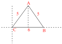 AB = AC = 5 cm. The third side BC, of length 6cm, is made from uniform wire of twice the density of the first. The distance of centre of mass from A is :